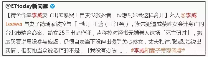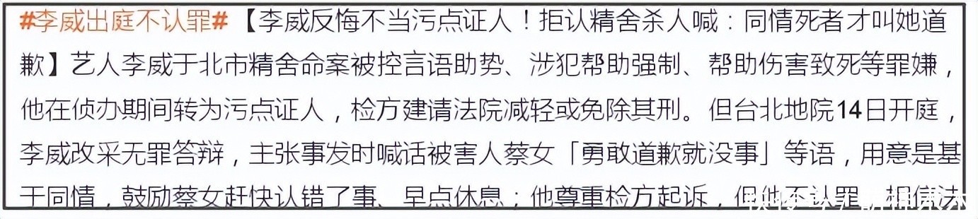 李威卷入台北精舍命案后续来了!去年李威被曝卷入命案,侦查结束后以伤害致死、伪造文书、诈欺等罪起诉王蕰、李威等人。据台媒最新报道,受害者家属已经和李威夫妇达成和解,请求法院从轻判刑,引发热议。