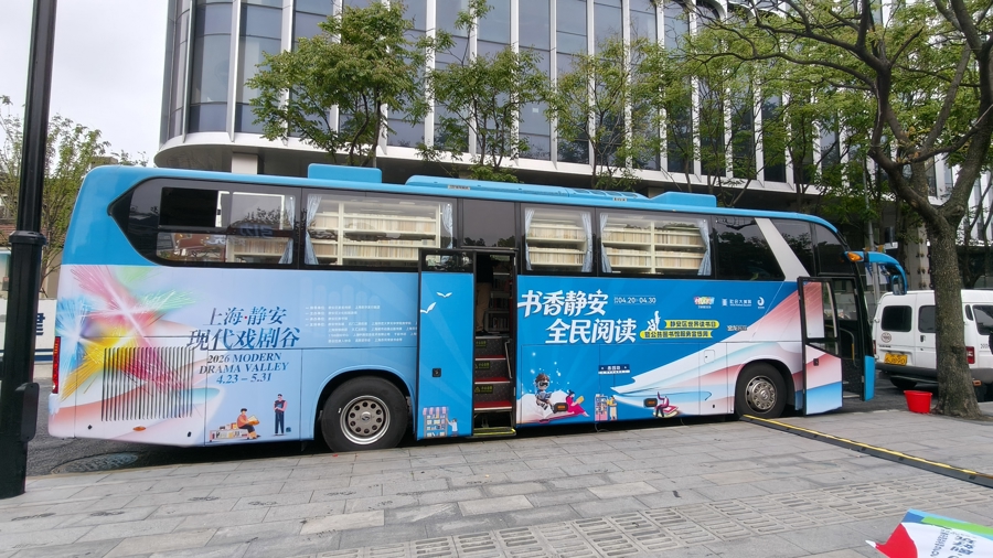 主打跨界创新的“动YUE静安”板块,以“蓝色书巴”流动图书馆为亮点,联动商圈快闪、戏剧市集、街区朗诵等多元形式,让阅读场景走向街头街巷、商圈街区。在永源路举办的“戏引力·剧好玩”2026静安戏剧市集上,静安区图书馆的“蓝色书巴”流动图书车换装为戏剧巴士,“戏剧图书”主题书架荟萃经典剧作原著、戏剧大师传记、戏剧电影改编文学等优质书籍,“海上读城记”主题书架聚焦上海城市发展与人文积淀,4000余册优质图书可供读者借阅。“书巴”还搭载VR沉浸式互动设备,为市民带来新颖独特的智慧阅读体验。4月25日,市集还将举办白领朗诵快闪,静安白领朗诵沙龙声悦读团队演绎《钢铁是怎样炼成的》《金锁记》《繁花》等文学作品。未来的周末时光,戏剧主题“蓝色书巴”流动图书车将持续现身静安辖区街巷里弄、商圈广场、社区公园,将优质馆藏书籍、专业阅读服务、新潮数字文化体验送到市民家门口。