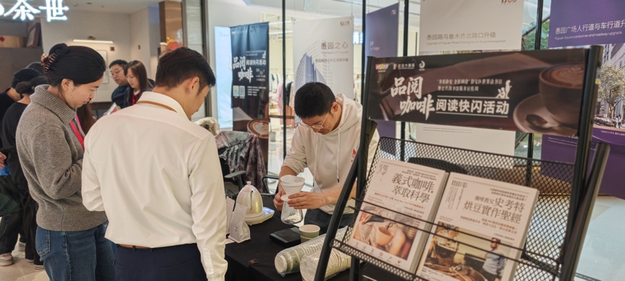近年来,静安不断拓展阅读服务边界,从图书馆延伸至社区商圈,从传统纸本迈向数智融合,构建“处处可读、时时可读、人人爱读”的书香城区生态。全民阅读活动周期间,在南京西路1788国际中心,一场“品阅咖啡”阅读快闪活动,融合咖啡烟火与书卷书香,让阅读成为都市人群治愈疲惫、丰盈身心的日常方式。在千彩书坊,作家简平带着新书《开合的睫毛》与读者分享平凡日常中的温暖与共鸣;“阅读的力量”分享会邀请资深出版人祝君波等嘉宾,围绕“阅读为什么有力量”“怎样更好地阅读”展开分享。